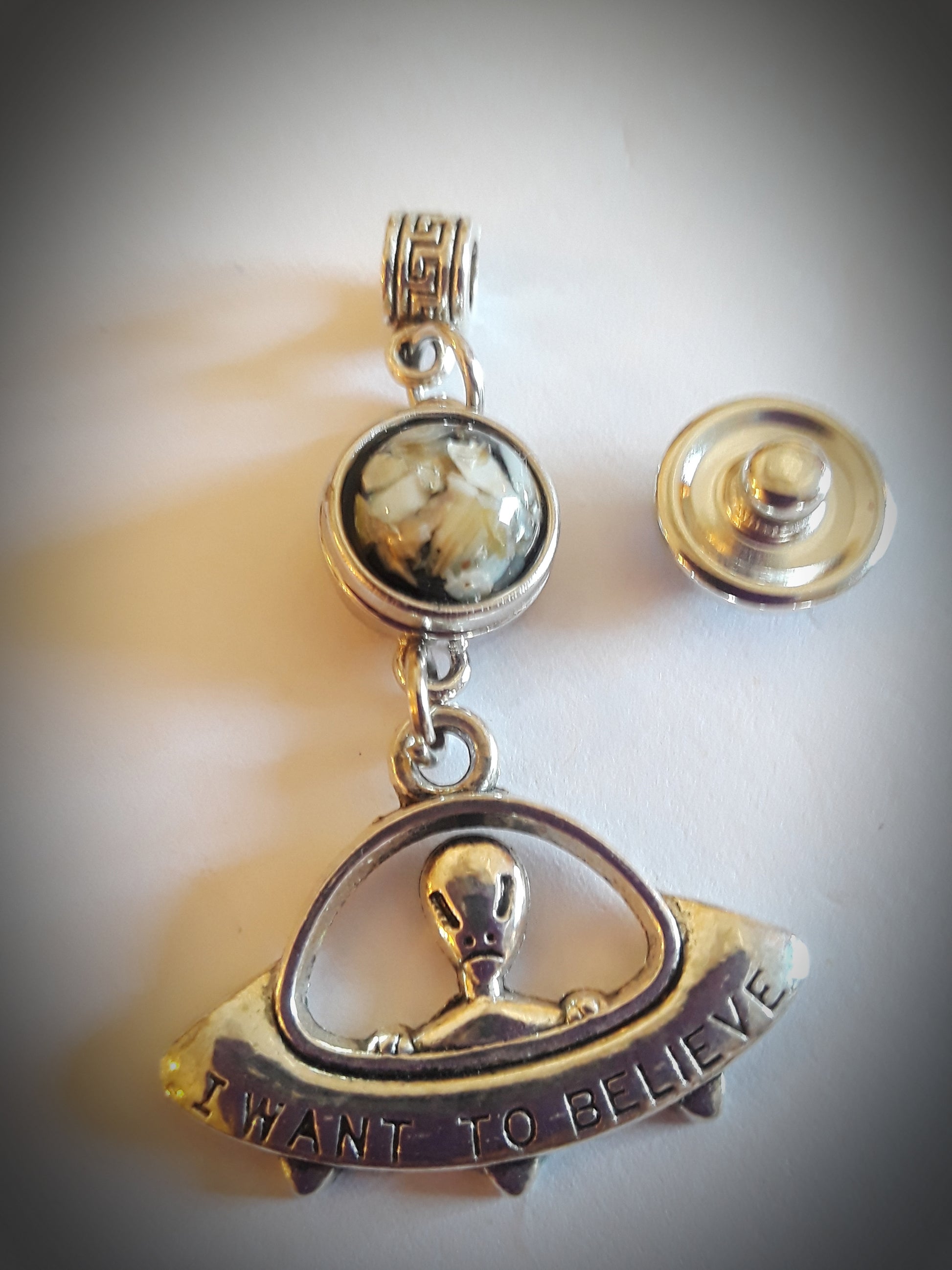 18mm noosa or 12mm noosa snap base with alien pendant. Comes with snaps shown. Excellent gift for anyone who loves X-Files, the ancient alien theory, or anyone who 'wants to believe'. Comes with snaps shown. 100's of snaps available to change the look. 18mm Galaxy and astrological snaps are great with this pendant. Pm me for any help ordering or questions! Get your snap on