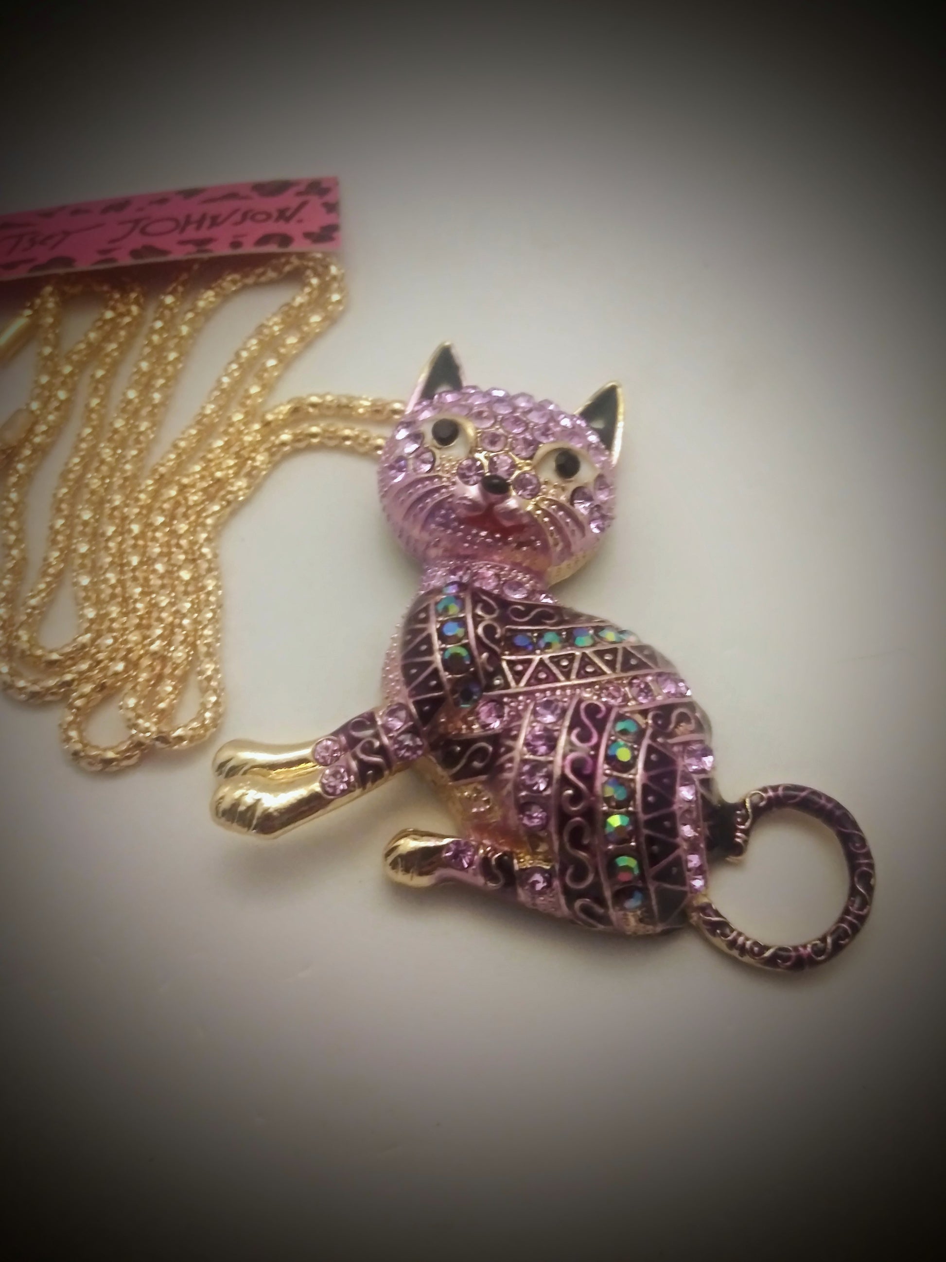 BETSEY JOHNSON BEAUTIFUL. PURPLE, BLACK, SILVER, and RAINBOW CAT PENDANT/BROACH