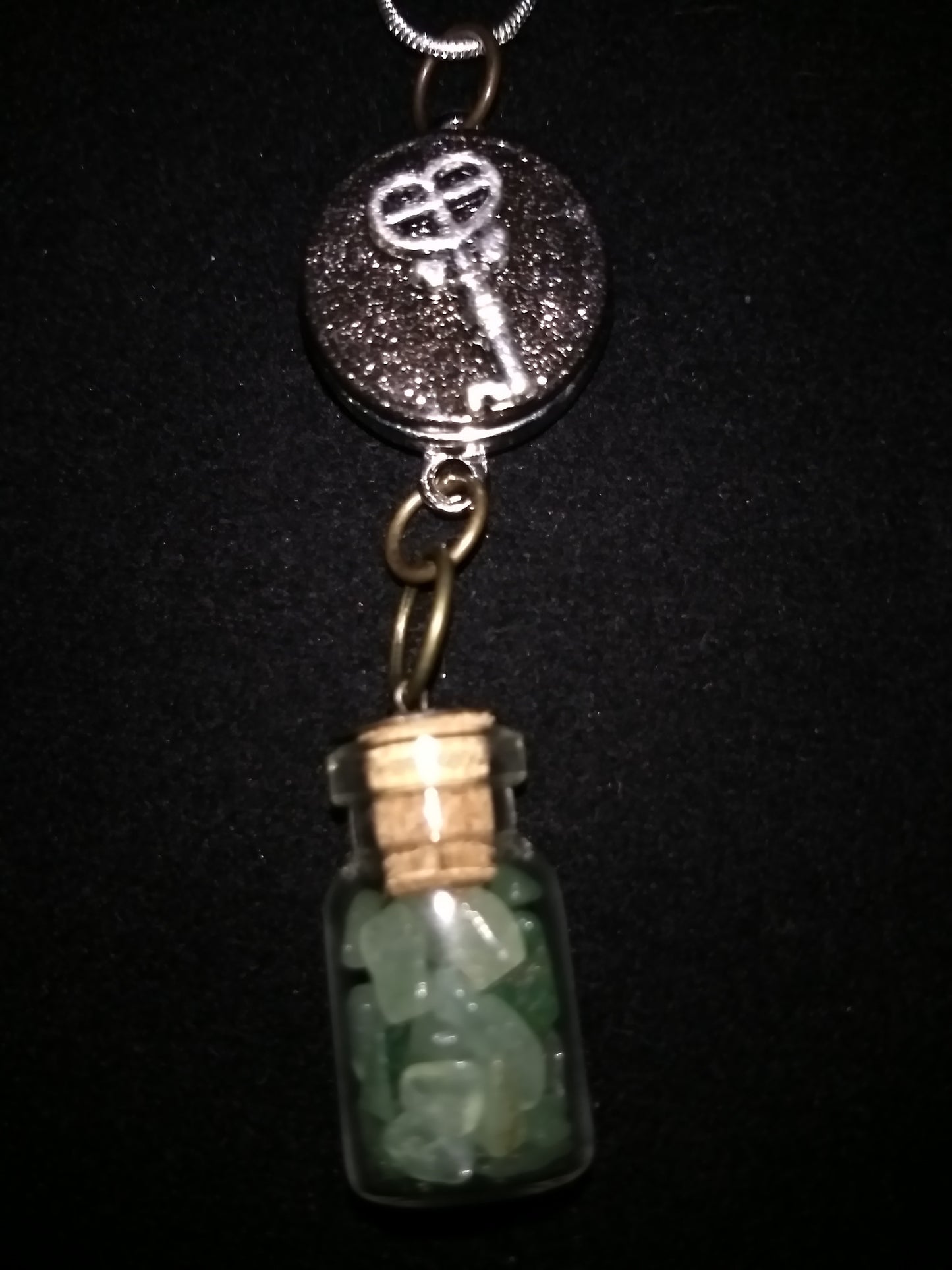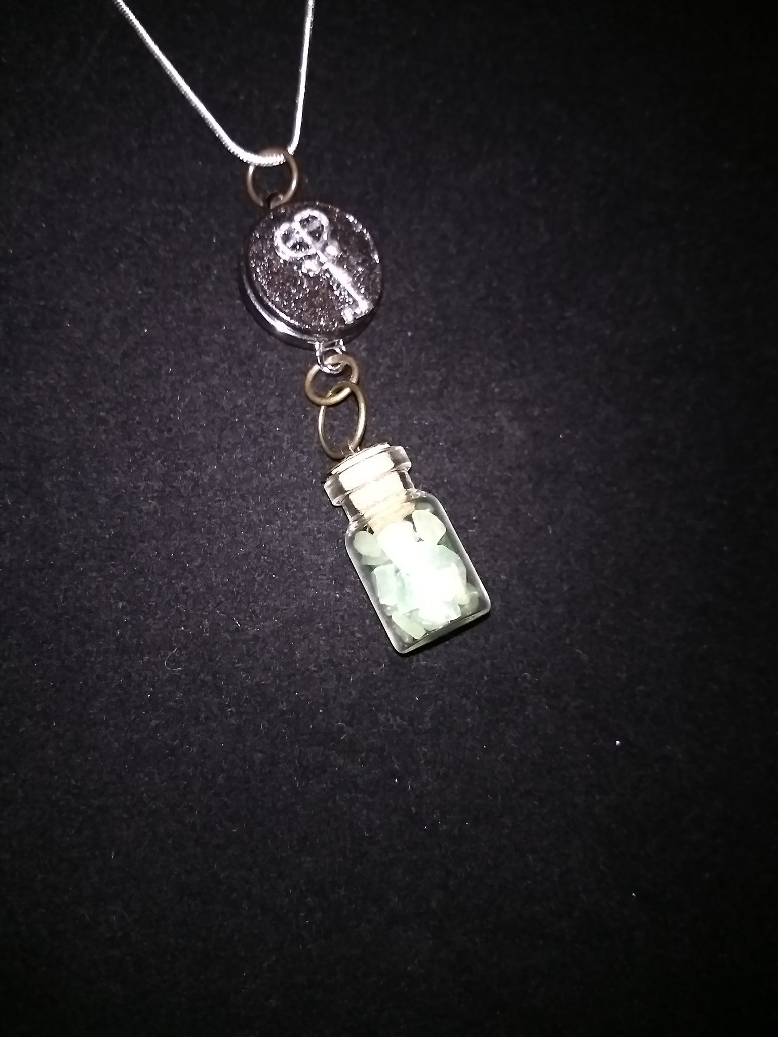 Crystals in a bottle gem necklace with removable snap