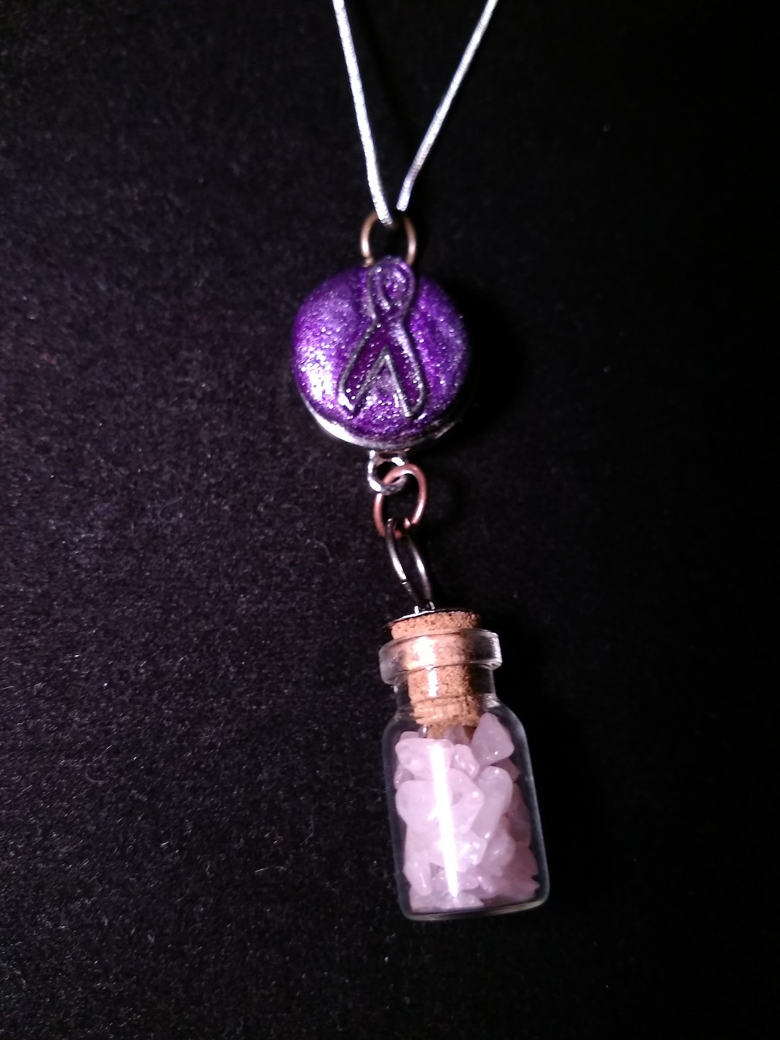 Beautiful real healing Rose Quartz Crystals in a protective hanging bottle with an 18mm noosa snap base comes with one interchangeable handmade snap.