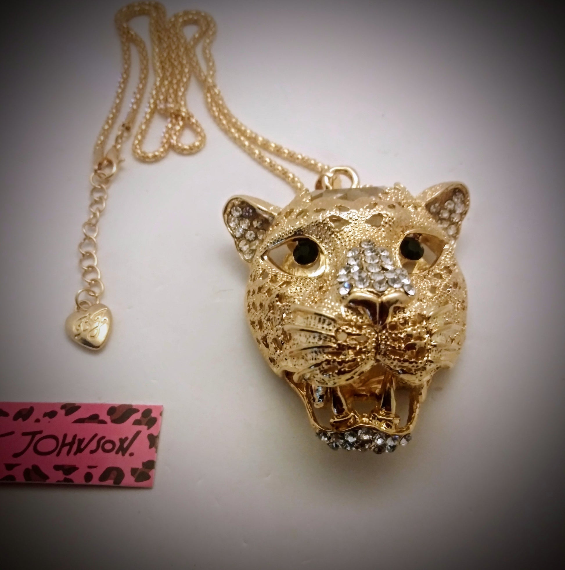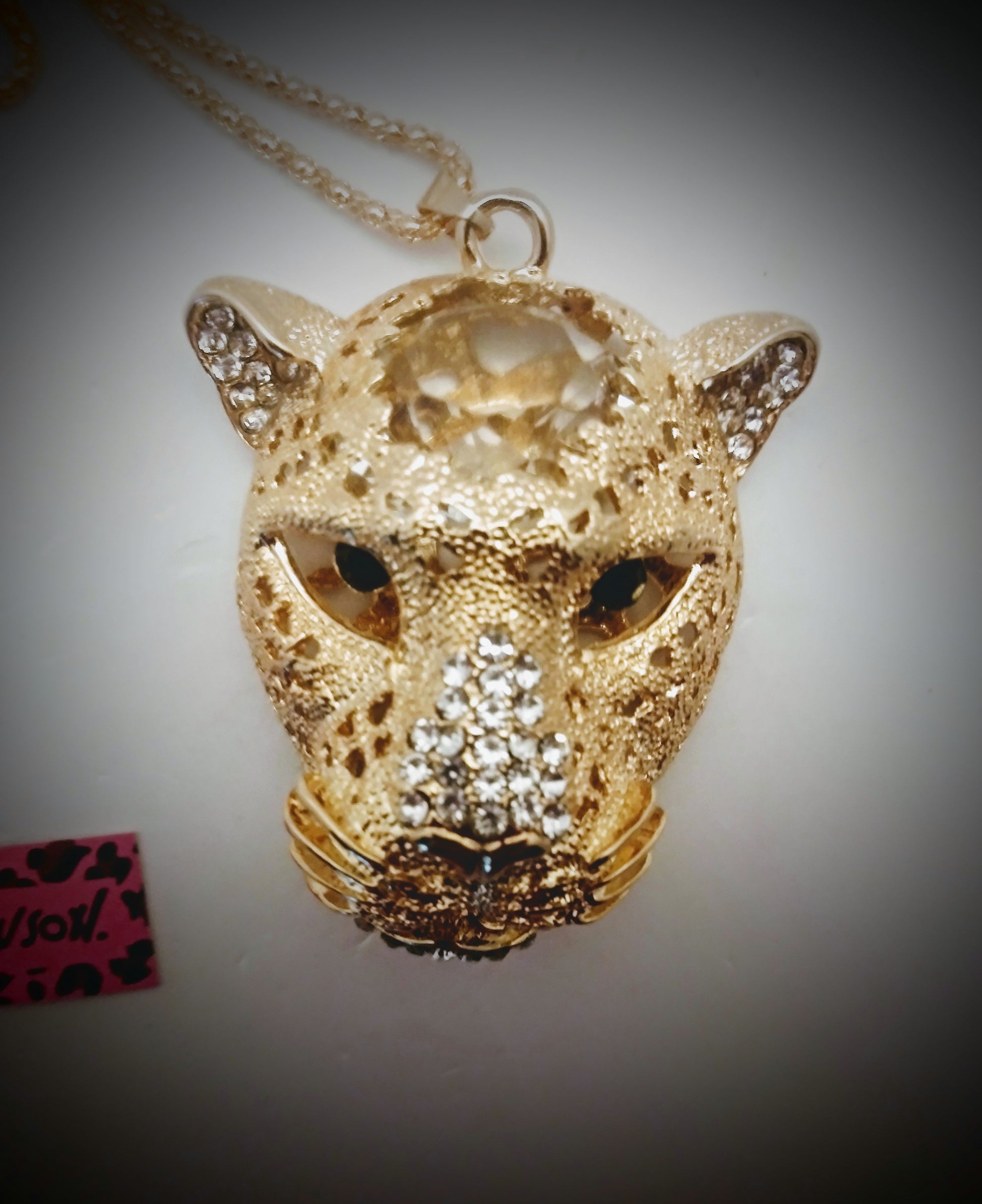 BETSEY JOHNSON BEAUTIFUL CRYSTAL WITH SILVER OR GOLD 3D PANTHER/CAT PENDANT