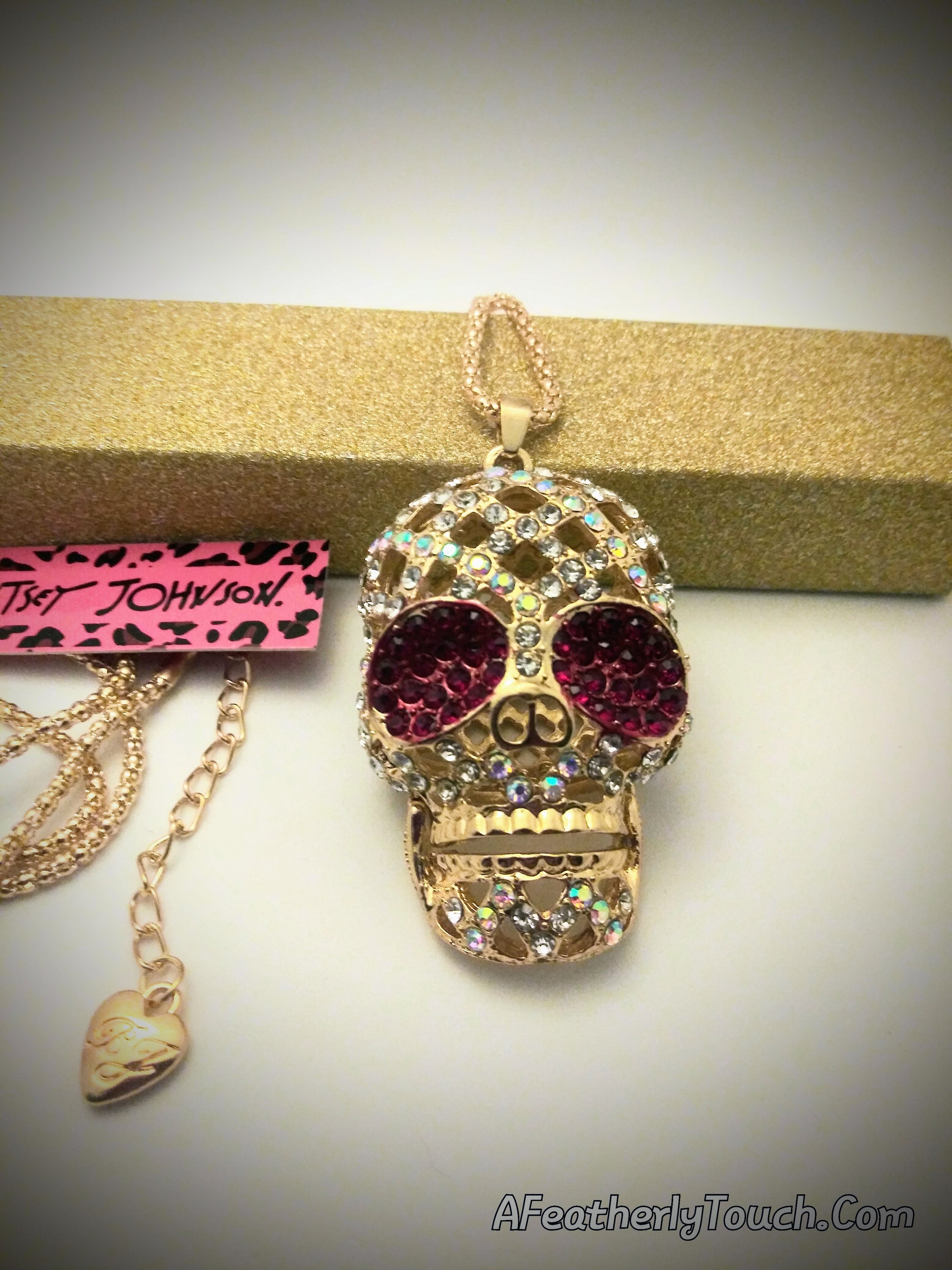 Stunning Betsey Johnson crystal rhinestone skull With moveable jaw. 28 inch chain with a 2 inch extender.