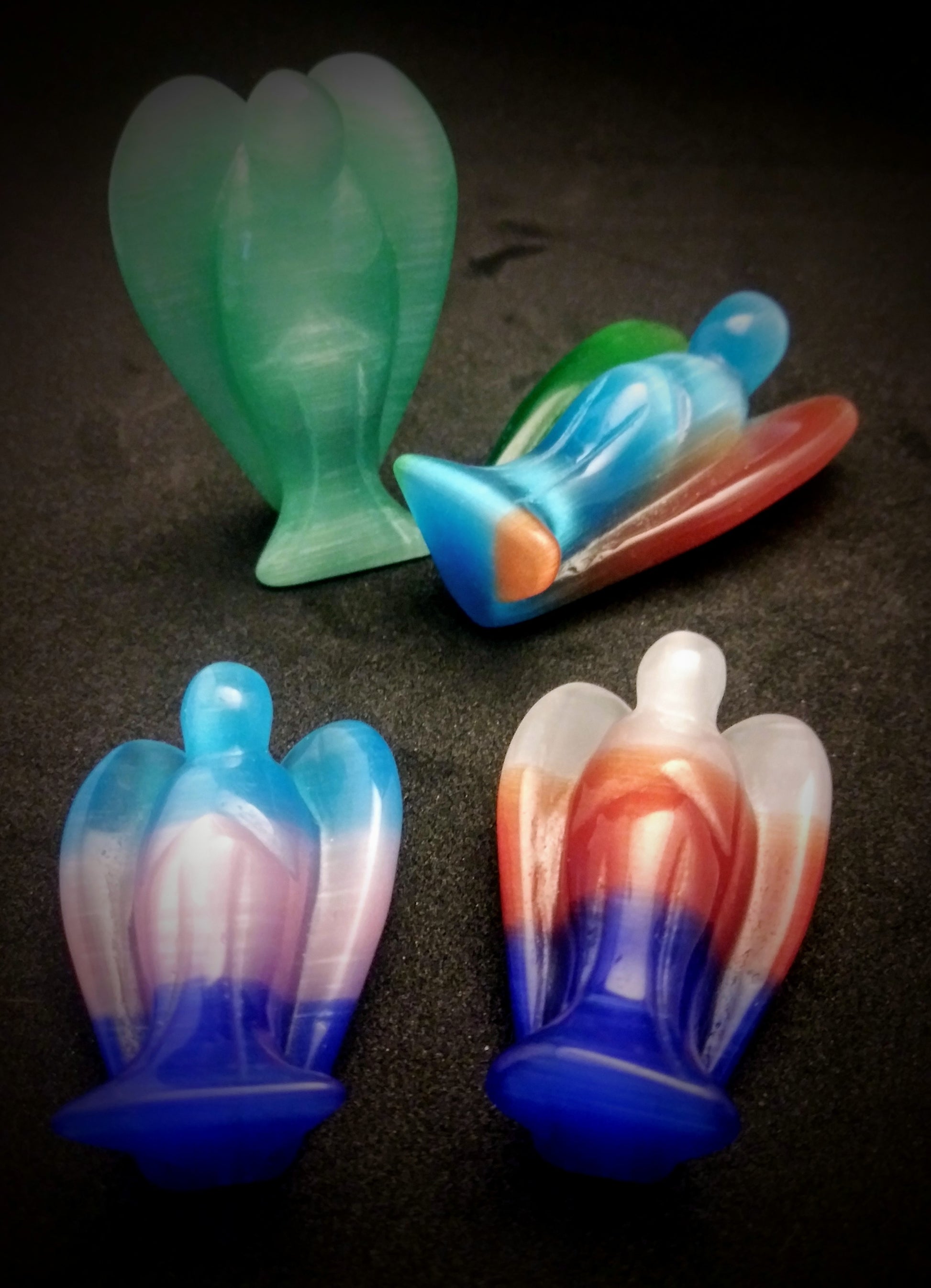 Beautifully carved Cats Eye Crystal Angels mini about 20mm to 52mm