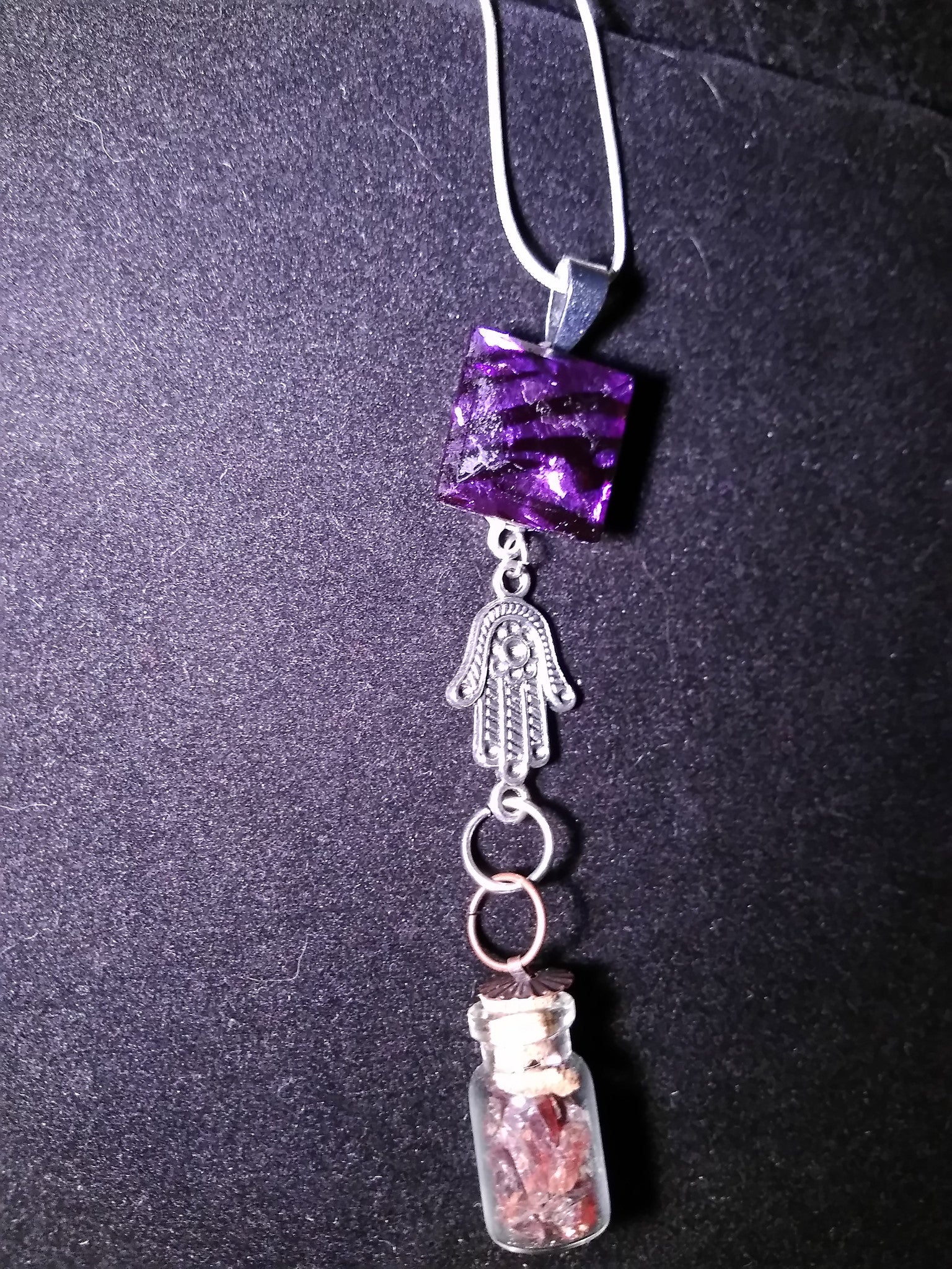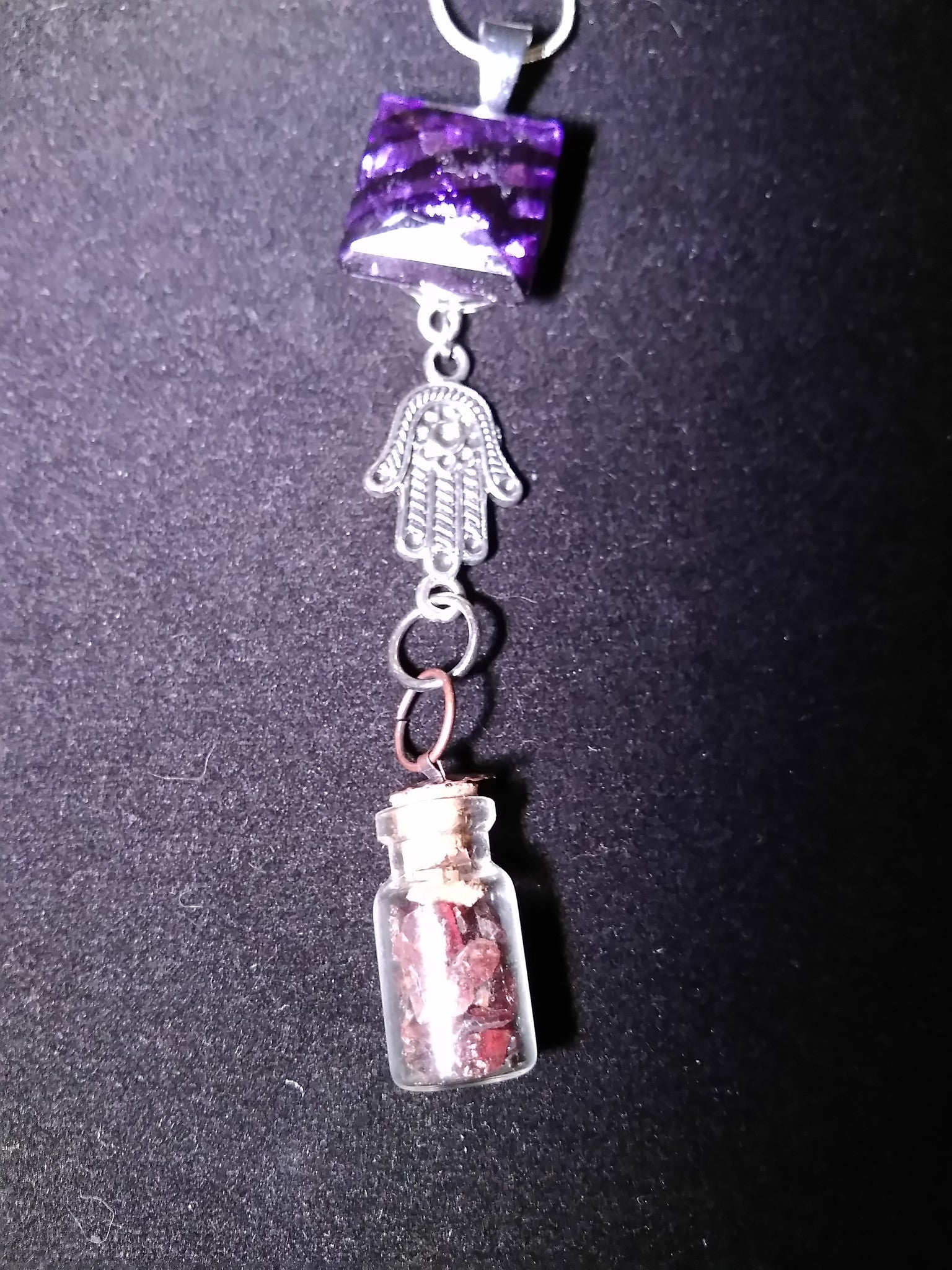 Crystals in a bottle gem necklace garnet with removable snap