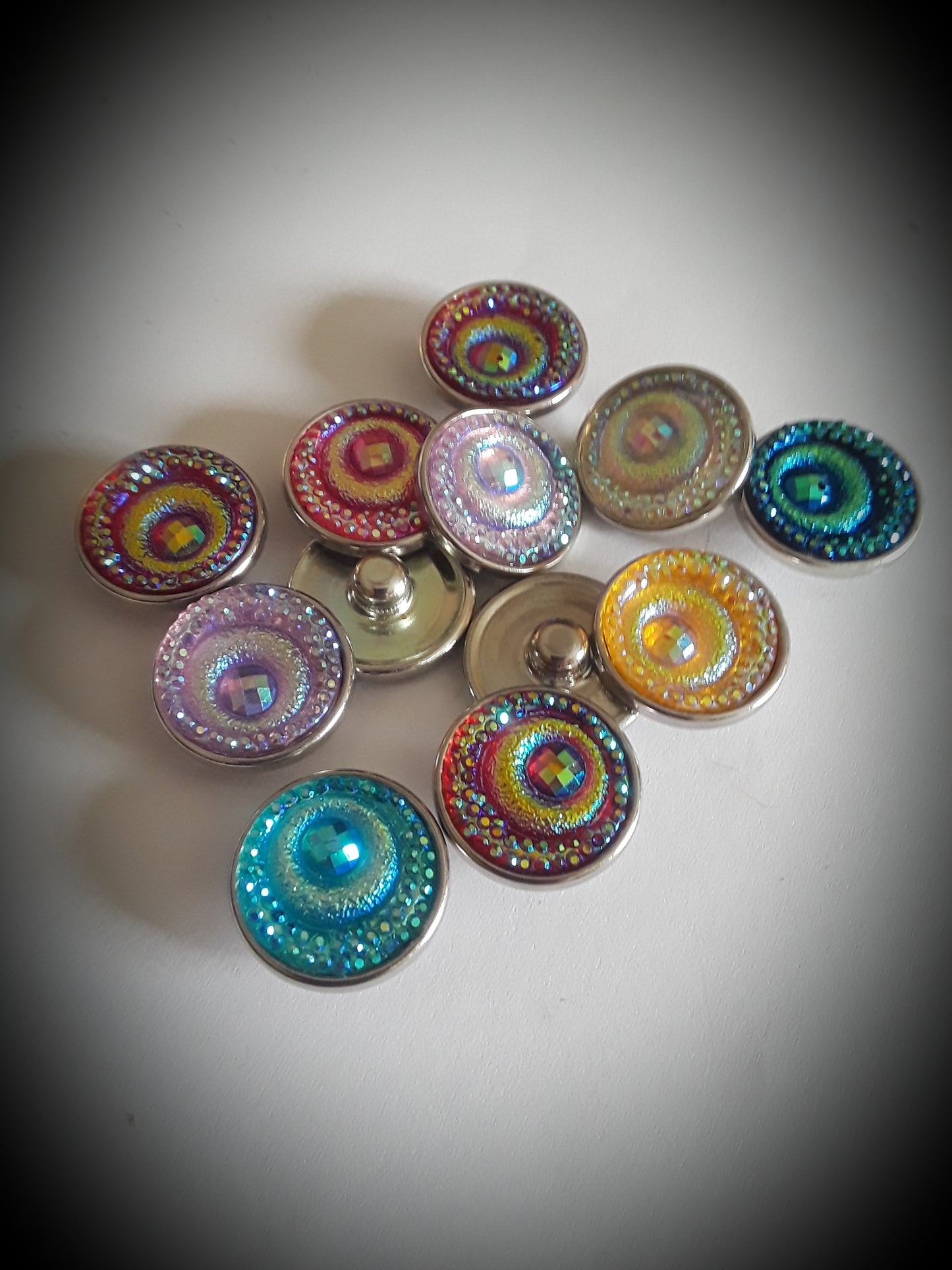 Beautiful and unique iridescent 18mm NoosaSnaps Peacock Eye design in multiple colors